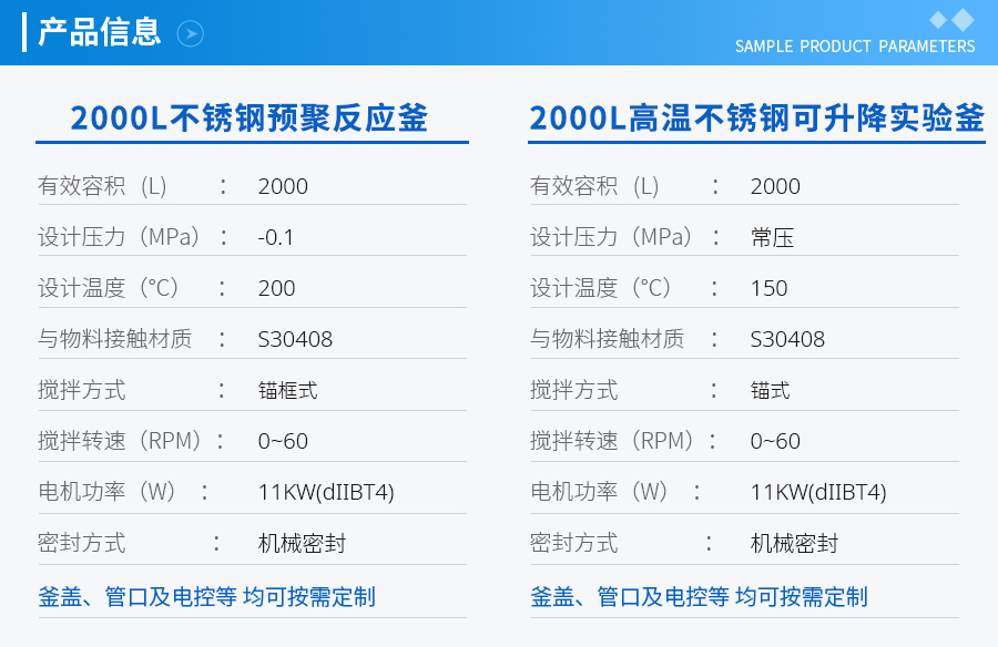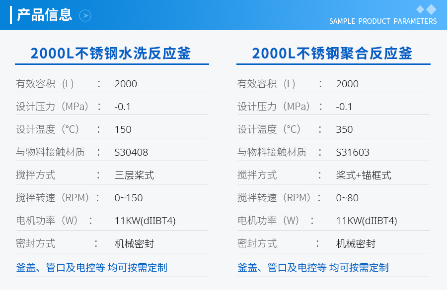 | 主要材料 | 釜體材料主要采用不銹鋼與碳鋼復(fù)合材質(zhì) S30408(304)+Q345R、S31603(316L) +Q345R、S32168(321)+Q345R, 也可是純不銹鋼材質(zhì),并可根據(jù)不同介質(zhì)要求制作鈦材、鎳材、鋯材、哈氏合金、蒙耐爾合金等復(fù)合材質(zhì)反應(yīng)釜,也可根據(jù)客戶要求主要材料噴涂四氟PTFE/PPL。 | ||||||
